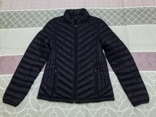 Chaqueta acorchada talla .M Marca Kelrebe color azul oscuro. Dos bolsillo exteriores con cremallera. Dos bolsillos interiores. Forma de cerrar la chaqueta con cremallera. Medida de la parte de abajo al cuello. 62 CT Muy ligera, pesa muy poco y a la vez abriga bastante.