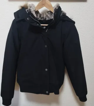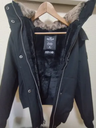 Chaqueta de la marca Hollister con forro interior de pelo sintético y capucha. - Cierre de cremallera. - Bolsillos laterales. - Puños y bajo elásticos.