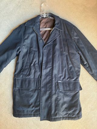 Abrigo de la marca Belstaff en color gris azulado. Mide 63 CMS entre sisas el forro interior. Mide 70 entre sisas la parte exterior El forro interior se puede quitar y usar por separado, al igual que el exterior, que tiene el forro completo Atención: tiene un defecto en el puño izquierdo (ver última foto). Le falta el corchete y está pegado. - Diseño con múltiples bolsillos. - Cierre de botones. - Detalle de ribete blanco en los bolsillos superiores. - Sin cinturón