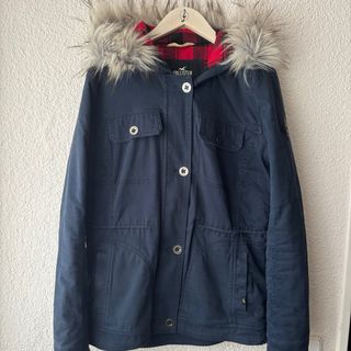 Abrigo en color azul marino con detalles en rojo de la marca Hollister Talla M La capucha está adornada con pelo sintético extraíble. Cierre de botones. Bolsillos frontales con solapa. Forro interior a cuadros. En perfecto estado 🖤 🔴 Pásate por mi perfil, cositas desde 1€ ⚫️ Llévate un descuento comprando más de dos artículos 🔝 ⚠️ Urge venta por mudanza ⚠️