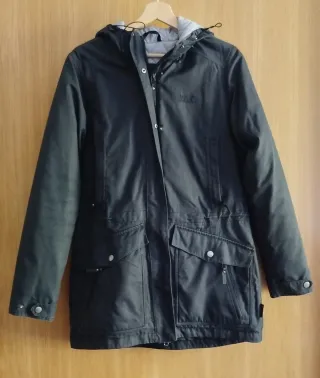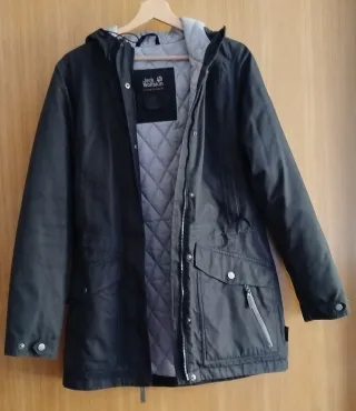 Abrigo de la marca Jack Wolfskin en color verde. Es un abrigo con capucha y forro interior acolchado. - Cierre de cremallera. - Bolsillos frontales con solapa y botón. - Bolsillo lateral con cremallera. - Puños ajustables con botón.