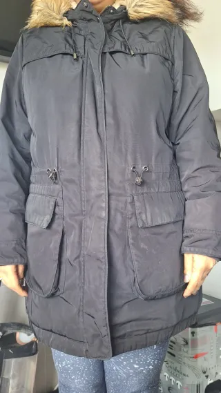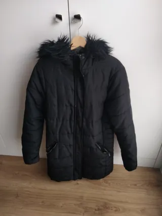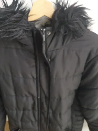 Abrigo negro de la marca Pimkie, perfecto para el frío. - Capucha con forro de pelo. - Cierre de cremallera. - Bolsillos delanteros. - Forro interior muy suave. Tiene muchos años, pero carece de manchas o rotos, lo único el desgaste de los bolsillos delanteros indicado en una foto.