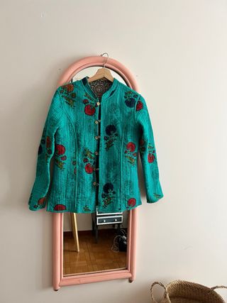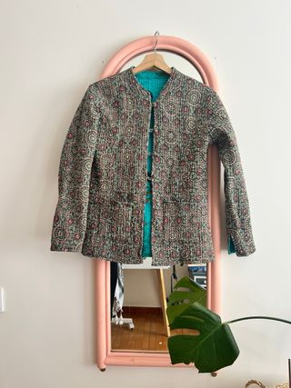 Chaqueta con un diseño vibrante y reversible. - Estampado geométrico. - Cuello mao. - Cierre de botones. - Forro interior de color turquesa.