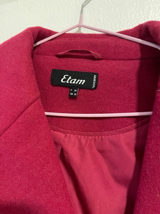 Abrigo de la marca Etam en un llamativo color rosa/rojo. - Diseño clásico con solapas. - Cierre de dos botones. - Bolsillos frontales.