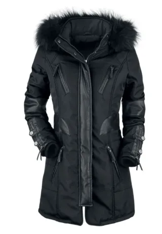 Abrigo de invierno negro con pelo