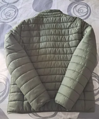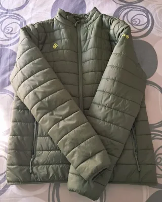Abrigo acolchado de la marca IZAS en un tono verde oliva. Presenta un diseño moderno y ligero, ideal para el entretiempo. - Cierre de cremallera frontal. - Bolsillos laterales con cremallera. - Cuello redondo. - Detalle de logo en manga y pecho.