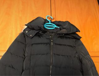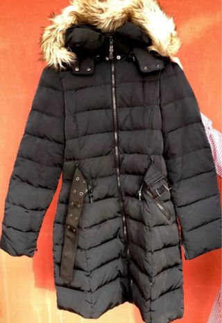 Conjunto de dos chaquetones de la marca Zara en color negro, uno un plumífero muy calentito y otro de paño con puños y cuello de punto. En perfecto estado. Son ideales - Diseño acolchado. - Capucha con pelo. - Cinturón decorativo con ojales.