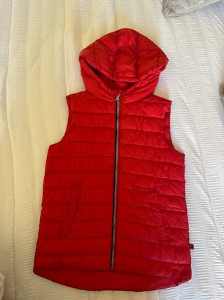Chaleco acolchado con capucha. Con etiqueta - Es muy gordo, abriga mucho - Cierre frontal con cremallera. - Dos bolsillos laterales con cremallera. - Detalle de logo en el pecho. - Se le quita el gorro Talla L pero es como s Perfecto para regalar REBAJADO