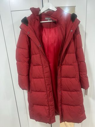 Abrigo largo rojo marca UNIQLO