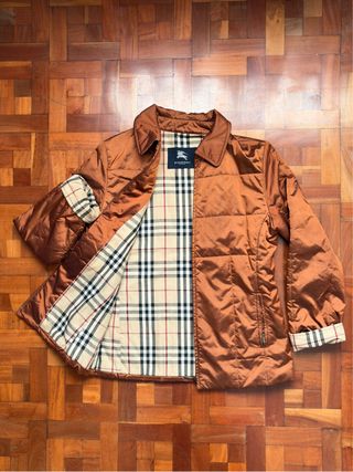 Chaqueta acolchada con un llamativo acabado en tono bronce. El forro interior presenta el icónico estampado de cuadros de la marca. - Diseño acolchado. - Forro con estampado clásico. - Cuello camisero.