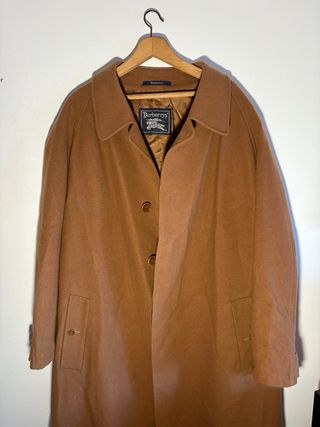 Abrigo largo de la marca Burberrys, un clásico atemporal. - Diseño unisex. - Color beige y marrón.