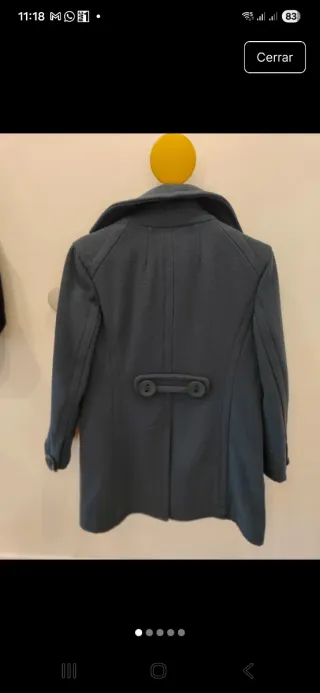 Abrigo corto de la marca Zara en color azul. - Diseño de doble botonadura. - Bolsillos frontales. - Cuello solapa.