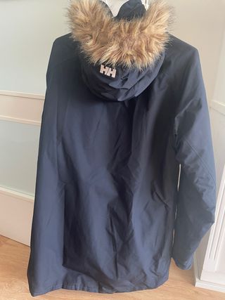 Abrigo largo de la marca Helly Hansen en color azul. - Capucha con pelo sintético. - Logo de la marca en la capucha. - tejidos primaloft y helly tech