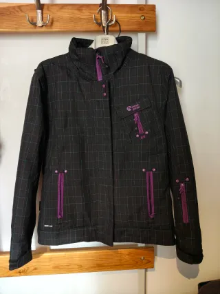 Chaqueta de la marca Neak Peak en color negro con un diseño de cuadros. - Cremalleras y detalles en color morado. - Bolsillo en el pecho con cremallera. - Cuello alto.