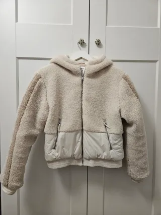 Abrigo de niña de la marca IKKS, perfecto para mantenerla abrigada con estilo. - Diseño acolchado en la parte inferior. - Tejido tipo borreguito en la parte superior y mangas. - Cremallera frontal. - Bolsillos con cremallera.