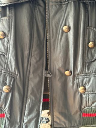 Chaleco acolchado de la marca Moncler. Color negro brillante. Usado un solo día y no puesto más debido a que se me rompió ese primer día. Presenta una pequeña quemadura como se puede apreciar en la foto 6 pero no se nota mucho y tiene arreglo, también se descosió una muy pequeña parte debajo del sobaco, pero se puede coser muy fácilmente, podría entregarla ya arreglada. Precio poco negociable.