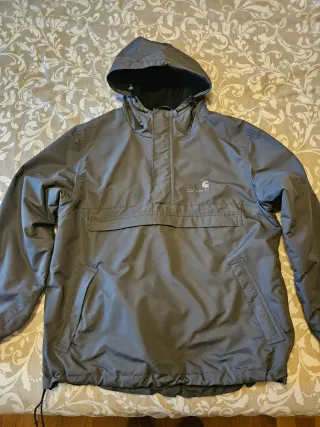 Cazadora estilo anorak de la marca Carhartt. - Color gris. - Capucha ajustable. - Bolsillo frontal tipo canguro. - Bolsillos laterales con cierre. - Cordón ajustable en el bajo.