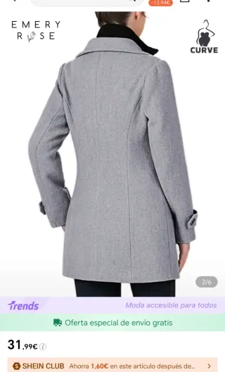 Abrigo de la marca EMERY ROSE en color gris. A estrenar talla 1XL de shein curvi