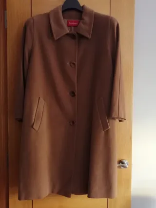 Abrigo largo clásico de la marca Paula de Santiago, elegante y atemporal, ideal para otoño e invierno. Confeccionado en mezcla de alta calidad: • 60 % lana • 20 % angora • 20 % nylon Forro interior 100 % viscosa, cómodo y agradable. Color camel/marrón, fácil de combinar. Corte recto, cierre con botones y bolsillos laterales. Prenda cálida, ligera y muy elegante, perfecta tanto para diario como para ocasiones más formales.