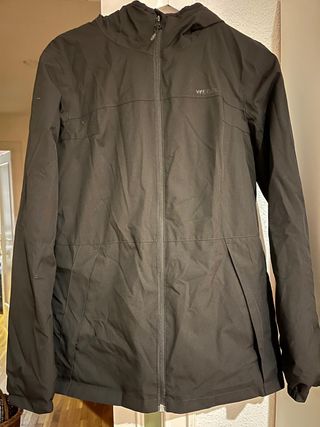 Chaqueta de esquí cálida, impermeable y de corte fluido. Color negro ahumado. Costuras principales estancas y puños ajustables. Con faldón paranieve, bolsillo para forfait, dos bolsillos cerrados para manos y un bolsillo interior. 4 Bolsillos 2 para manos con cierre, 1 para forfait y 1 interior Aislamiento de guata, grosor reforzado para usar a una Ta de hasta -8 °C. Impermeabilidad: Membrana de 5.000 mm (Schmerber) y costuras principales estancas. Nieve: Puños ajustables semielásticos, faldón paranieve para limitar entradas de nieve. Marca DECATHLON WEDZE, precio actual 39.99€