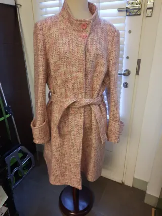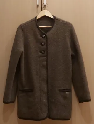 Abrigo de lana de la marca Gieswein. 80%Lana Virgen 20% Alpaca. Talla 38/40 - Diseño clásico. - Cierre con botones. - Ribete oscuro en cuello y bolsillos.