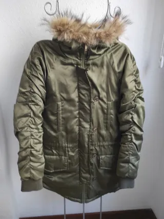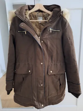 Abrigo tipo parka de la marca Zara Trafaluc, super calentito. - Capucha desmontable con pelo. - Forro interior de pelito. - Cierre de cremallera y botones. - Bolsillos con cremallera y solapa.