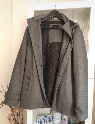 Abrigo acolchado de la marca Green Coast en color gris oscuro (negro). Da mucho calor. usado un par de veces. sin ningún desperfecto - Diseño acolchado. - Cierre de cremallera y botones. - Bolsillos frontales.