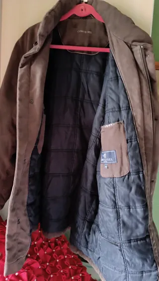 Abrigo de la marca Corte Fiel en talla XXL. Ideal para el frío. - Color marrón y negro. - Cierre de cremallera.