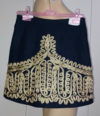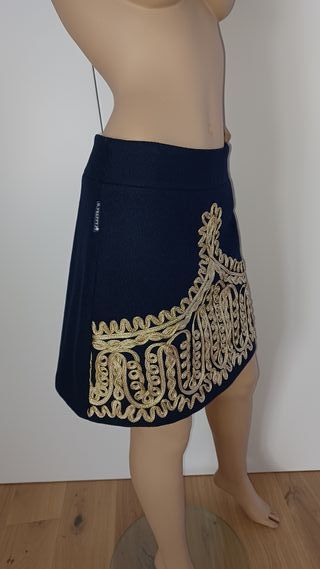Me costó 170 € Falda de paño azul con pasamanería dorada. Muy abrigada, calentita de lana, para invierno. Tiene 38 cm de cintura. 50 cm ancho en media falda. Largo 45 cm. Solo puesta un día. Guardo la etiqueta. ¡No te pierdas el resto de anuncios de mi perfil!