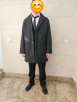 Abrigo de paño, con lana, de muy buena calidad, solo me lo he puesto dos veces porque se me ha quedado grande. Está como nuevo.