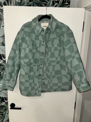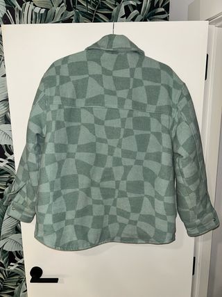 Chaqueta de paño con un diseño de cuadros llamativo. - Cuello camisero. - Cierre de botones a presión. - Dos bolsillos en el pecho. - Puños abotonados.