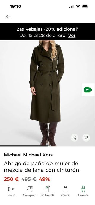 Abrigo Lana Michael Kors Talla L Verde Oliva