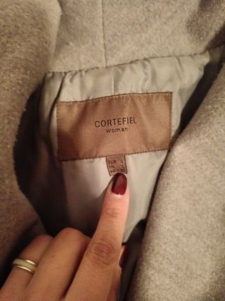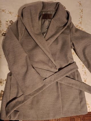 Abrigo de paño gris con cinto. Cortefiel talla L. Puse unos automáticos para cerrarlo sin cinto pero se pueden quitar.