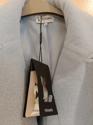 Abrigo de paño de la marca Minueto, con un bonito color azul y diseño de doble botonadura. Es una prenda elegante y versátil. - Cierre de botones. - Bolsillos frontales. - Cuello solapa.