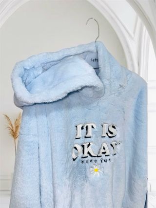 Abrigo de pelo suave con un divertido estampado. - Material: pelo sintético. - Diseño: IT IS OKAY have fun con una margarita bordada. - Estilo: Sudadera con capucha.