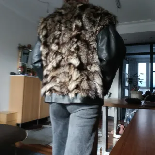 Chaqueta de cuero vintage con pelo