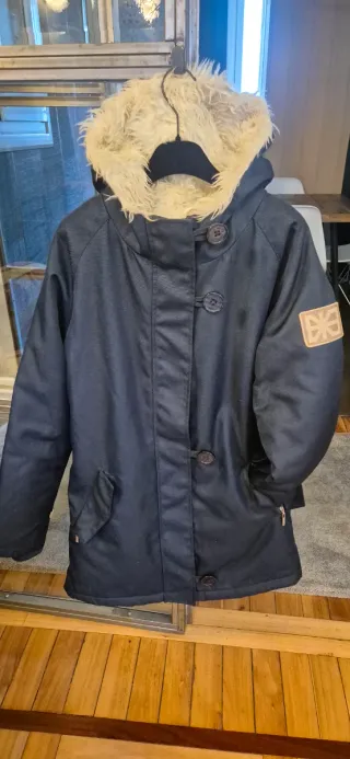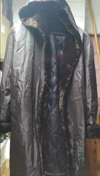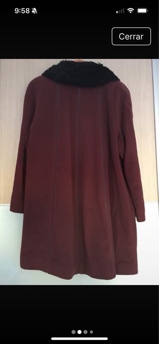 abrigo super calentito. muy poco uso, como nuevo es reversible, por un lado tela acolchada y por el otro pelo. es color granate la talla es una L.Se puede quitar el gorro con una cremallera. medidas: largo 82 cm y contorno pecho 108 cm