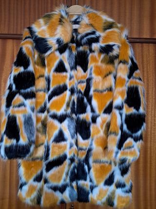Abrigo de pelo sintético con un diseño moderno y llamativo. - Tacto suave y agradable. - Corte amplio y confortable. - Cuello grande y envolvente. 100%nuevo, nunca usado