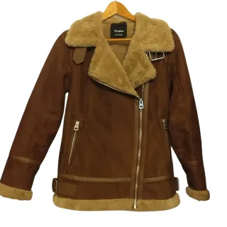 Cazadora de ante marrón con un cálido forro interior de pelo sintético. - Cierre de cremallera. - Cuello con solapas de pelo. - Puños y bajo con detalle de pelo.