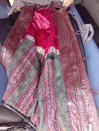 Talla 44 piel vuelta, forrado de pelo, no pesa nada muy ligero. Casi sin uso.