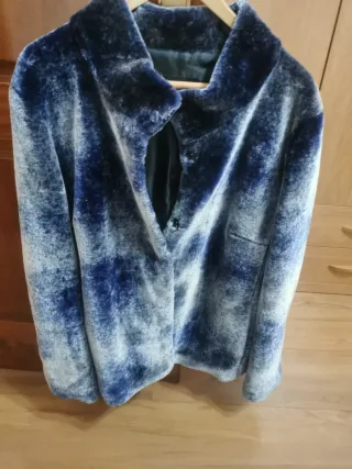 Elegante chaquetón de pelo sintético en color azul marino. Una prenda cómoda y con estilo. - Tacto suave y agradable. - Cierre con botones. - Cuello alto.
