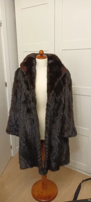 Elegante abrigo de pelo natural. - Pelo suave y denso. - Diseño clásico con cuello. - Cierre con botón.
