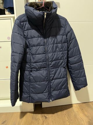 Abrigo de invierno de Zara, perfecto para mantenerte abrigado. - Diseño acolchado. - Capucha con detalle de pelo. - Cierre de cremallera. - Bolsillos con cremallera.