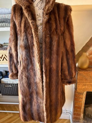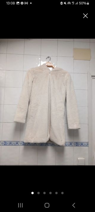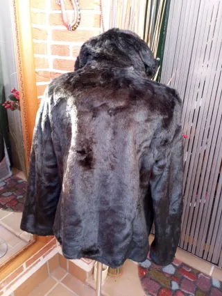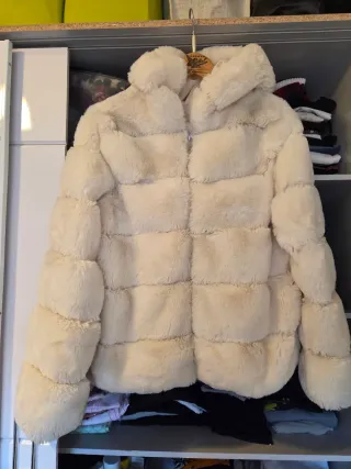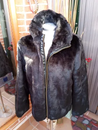 Abrigo de pelo sintético con capucha. Talla 46/48.Utilizado en una ocasión.Está como nuevo.Cierre con cremallera - Tacto muy suave. - Diseño moderno y cálido.