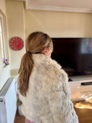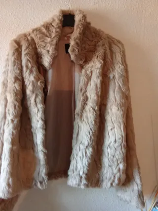 Chaqueta de pelo de conejo en tono beige. Una prenda elegante y cálida. En tienda imitación lo venden por 60€ este es pelo autentico, abriga muchísimo - Tacto suave y agradable. - Diseño corto y moderno.