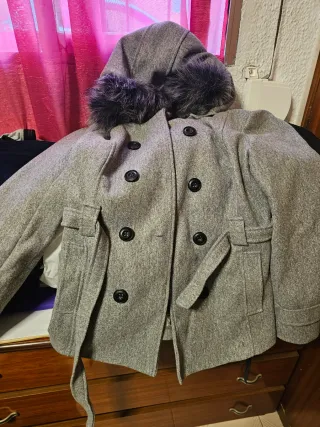 Abrigo Hollister XS/34 Gris con cuello pelo