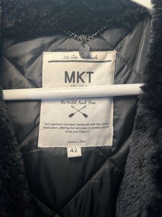 Abrigo largo de MKT Studio con un diseño moderno y cálido. - Cierre frontal con cremallera y botones. - Capucha con detalle de pelo. - Bolsillos laterales. - Puños ajustables.