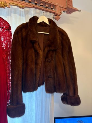 Elegante abrigo largo de pelo natural - Material: Pelo natural autentico Cuello solapa,bolsillo , cierre frontal con cierre de peletería, Forro interior con cintas para ajustarlo Talla M e incluso L Es nuevo de una tienda que cerro,lleva algo de tiempo guardado,tiene dos taras que le falta algo de pelo Medidas Hombro 42cm Sisa 54cm Manga 60cm Cintura 56cm Cadera 60cm Largo 113 cm - Color: Marrón - Diseño largo y sofisticado -mando un trozo de piel por si quieres arreglar la tara ,no se ve mucho es abajo del abrigo (No negociable) En la última foto están las dos taras