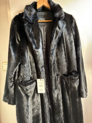 Elegante abrigo largo, perfecto para ocasiones especiales o para añadir un toque sofisticado a tu look. Es de pelo todo por dentro hasta las mangas. Súper calentito y elegante. - Diseño con forro de pelo. - Puños con detalle de pelo. - Cierre frontal con cremallera y rn la cintura tiene una cuerda para apretar más si se quiere. Puesto solo 2 veces.