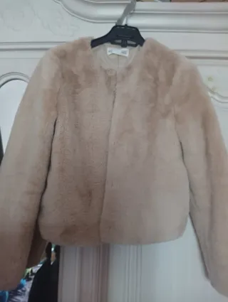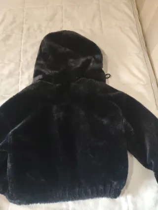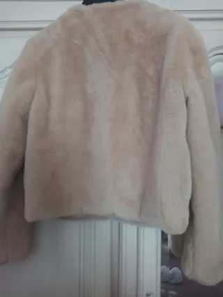Abrigo de pelo sintético muy suave y calentito. Perfecto para los días fríos. Casi sin uso. - Diseño con capucha. - Cierre de cremallera. - Bolsillos delanteros.